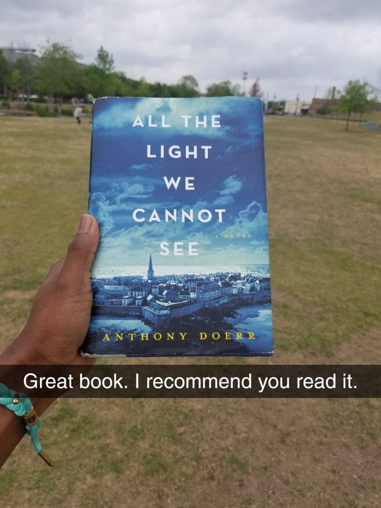 All the Light We Cannot See Posted on April 14, 2018 by glennericcrear This was a great book. I recommend that you read it 🤪 Share this: Click to share on X (Opens in new window) X Click to share on Facebook (Opens in new window) Facebook Like Loading...